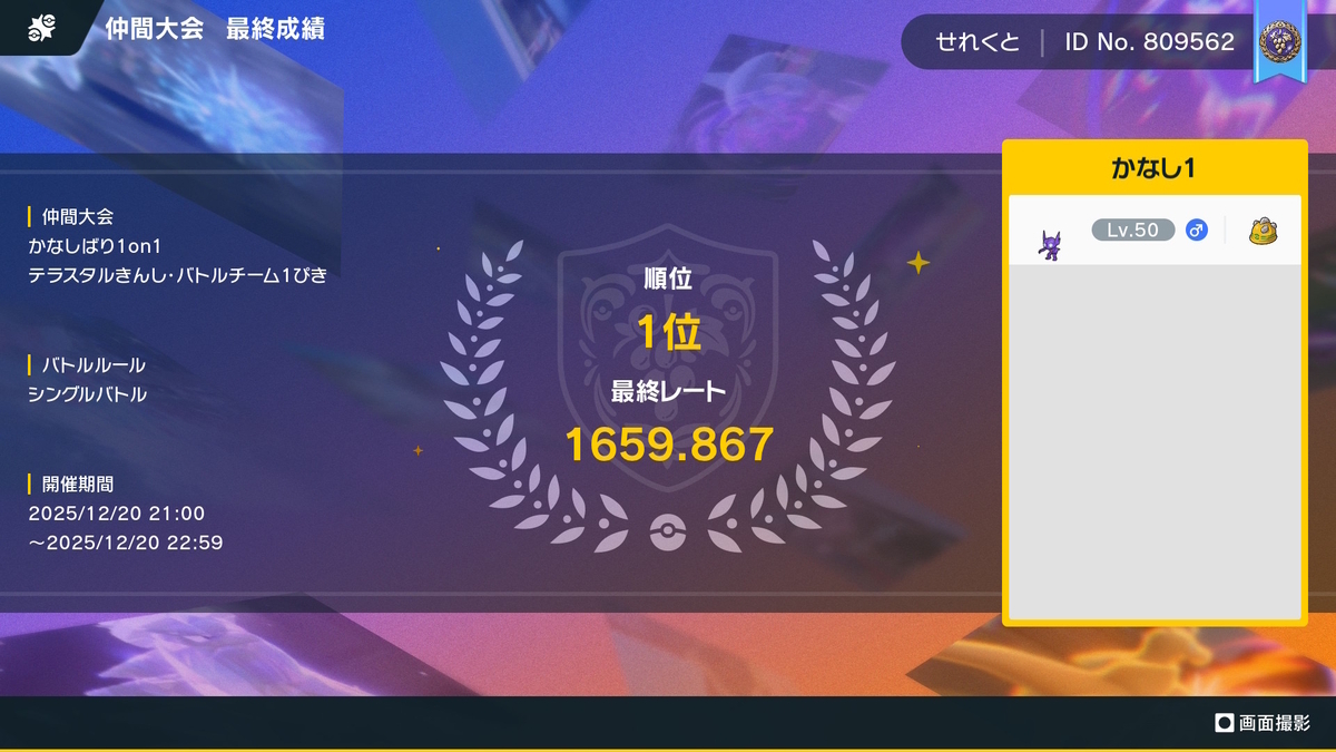 2026年1月26日、ごりちゅう(X: srtbprofessor83)さん主催の「メタル化・テラスタル装甲2」に参加しました。「ラスターカノン」のみを覚えたポケモン1体でポケモンSVのオンライン対戦を行います。